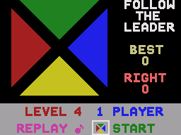 (5.90 MB)The first game is "Follow The Leader" where a pattern is repeated using a 4-color circle. By keeping track of either the tones generated or the colors flashing, the player can copy the sequence to continue. Higher difficulties increase speed and allow only tone identification of sequences. Additionally it keeps track of your best number of correct identifications in a row.